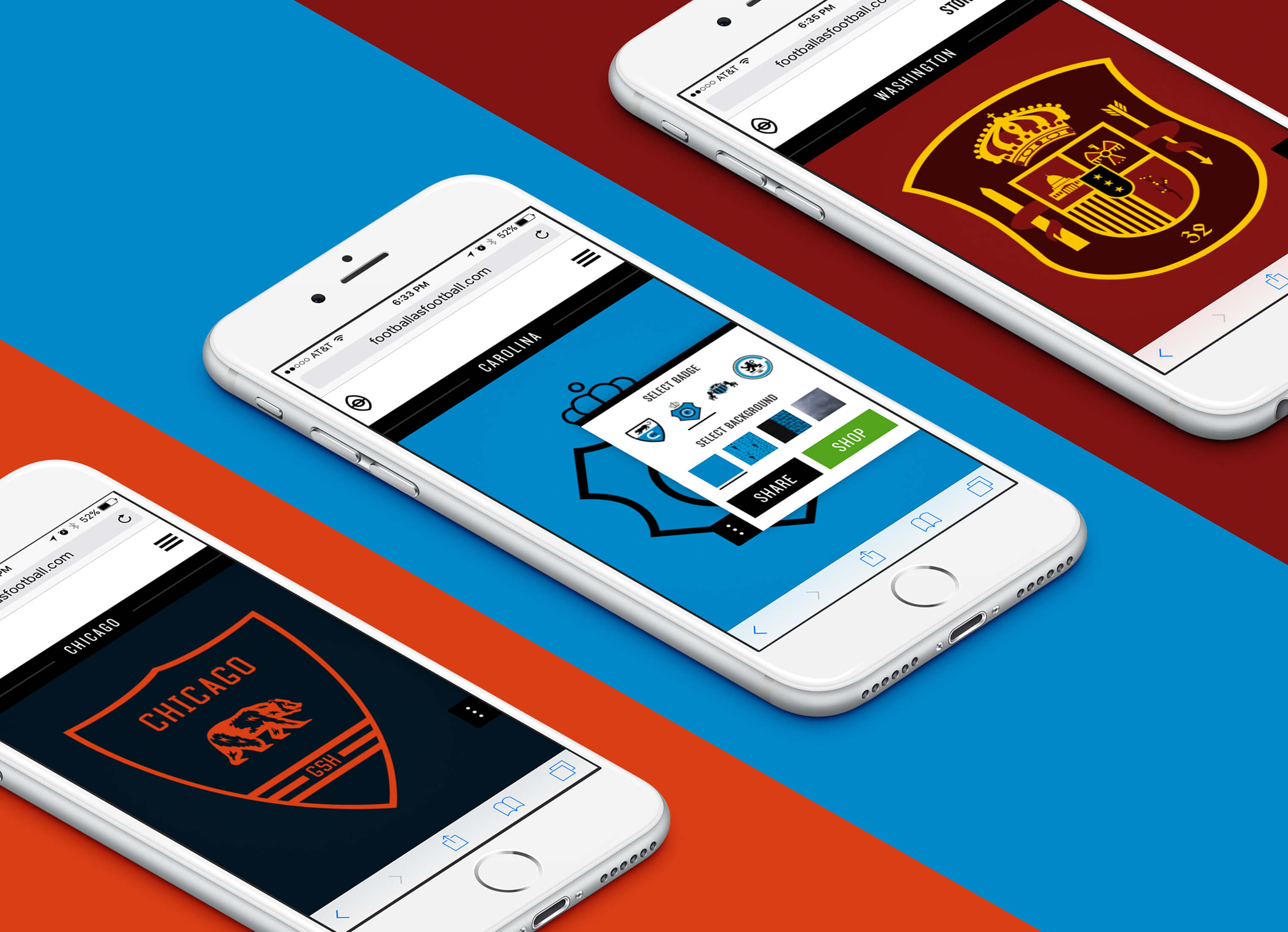 Football As Football is a design exploration taking American football team logos and redesigning them in four European styles: German, English, Spanish, and Italian. The project was a collaboration with Alec Lindsey, Eric Drommerhausen, Bill Gunter, Nikki Meyers, Josh Vadnais, and Garrick Willhite. We launched the project in 2013 and it's now been viewed by over a million visitors.