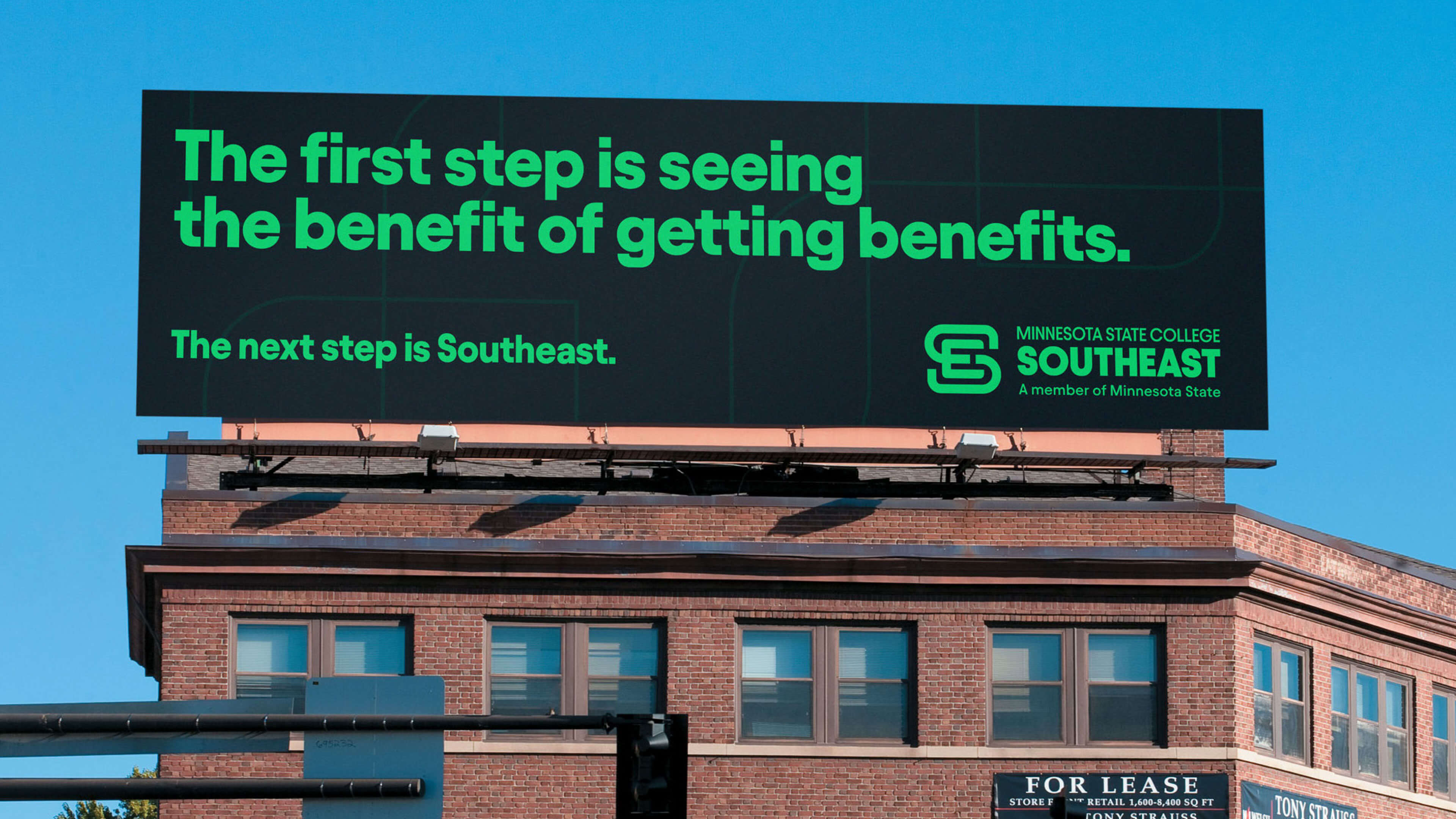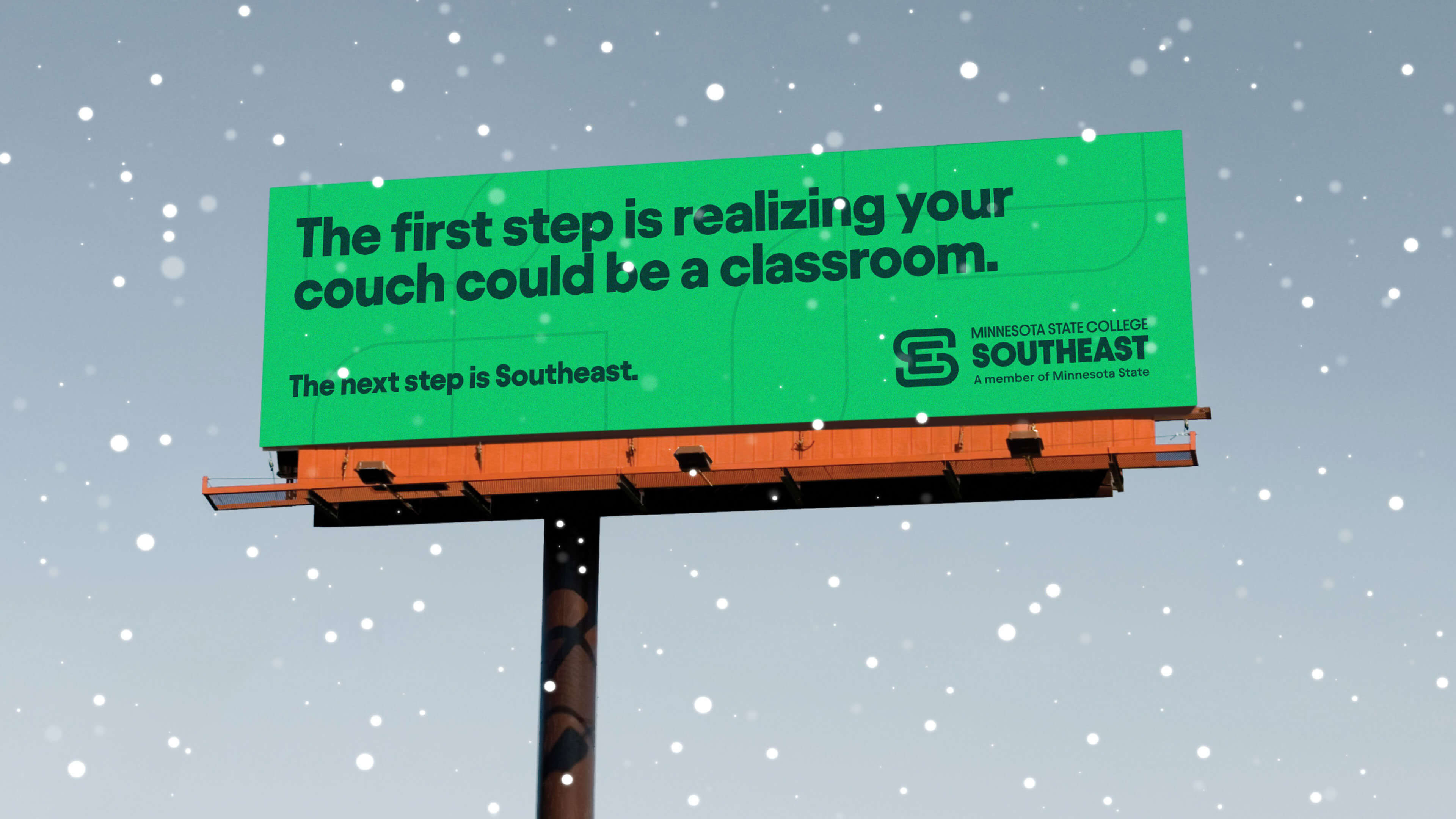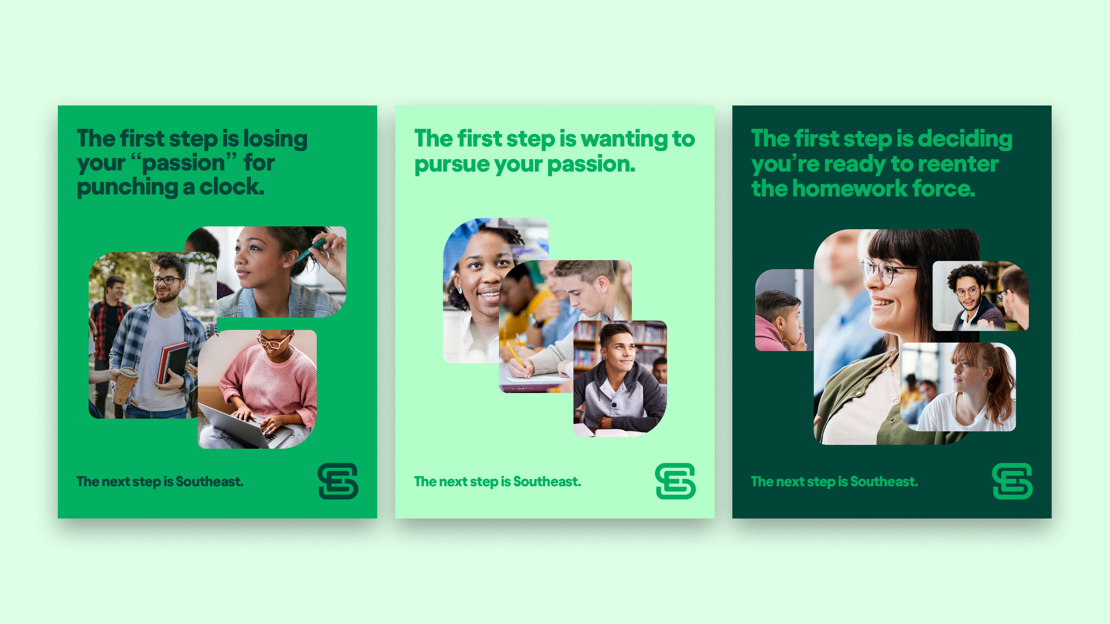 Our brand platform works with the framework of "First step ______. The next step is Southeast." The first line of this framework is to connect with prospects on either their barrier to college or their driving incentive into why they want to go to college. The first line connects to the consideration through personalization, the next line is about guiding prospects to a decision. Southeast. Also, the idea of stepping or moving forward is a nod to the directional sense of the name of the college – Southeast.