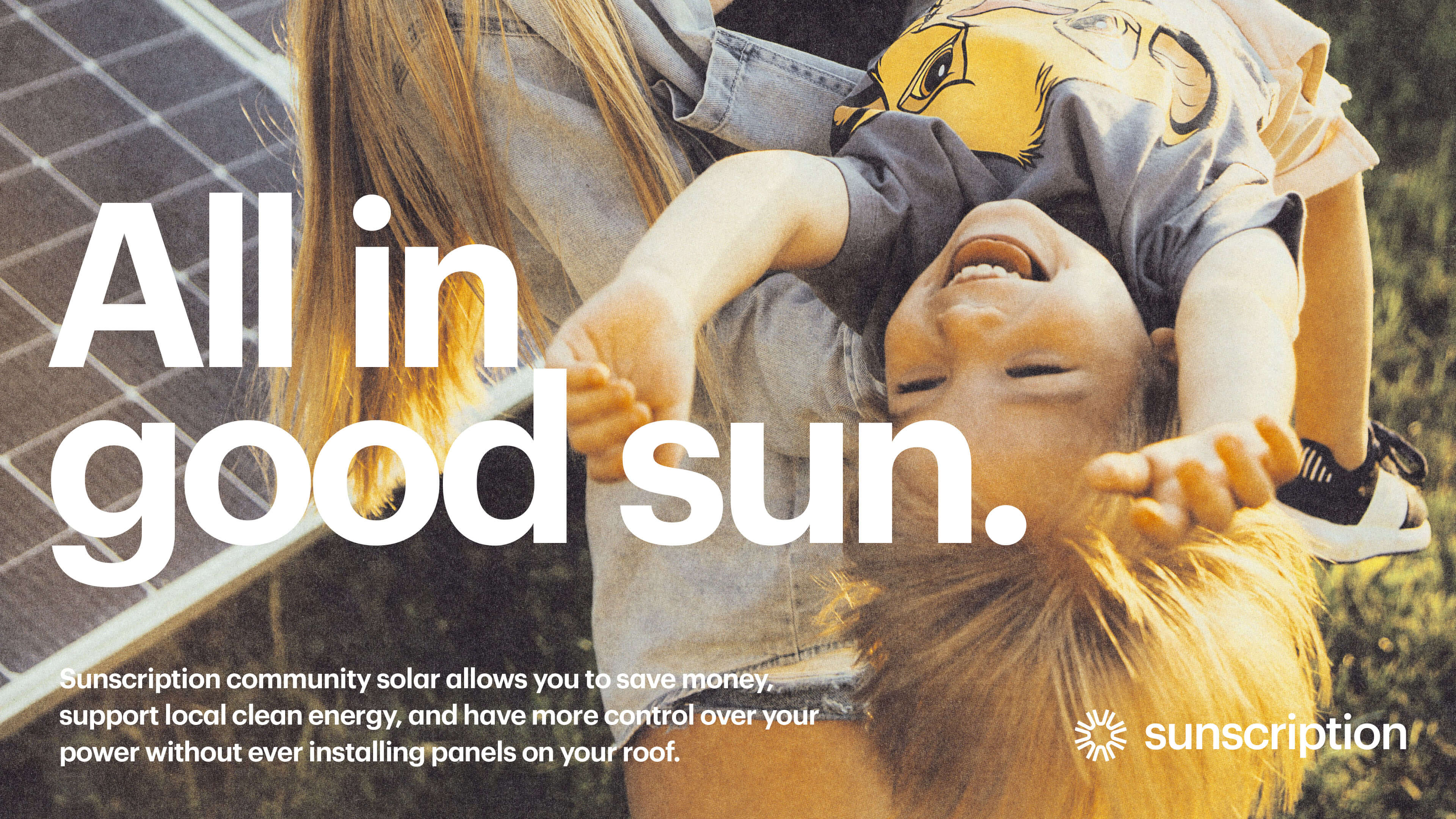 Through discovery and research, we found that competitors offering Community Solar programs were unclear in describing the service with a negative tone of voice. They lacked a clear story with an optimistic and consumer-friendly message about Community Solar. With a name like Sunscription, we created a marketing campaign that plays off the name with a fun and playful tone of voice. The portmanteau-like approach of using "sun" in replace of words that sound similar. Our campaign "Sunthing for everyone." is meant to say that no matter your reason, Community Solar is right for you.