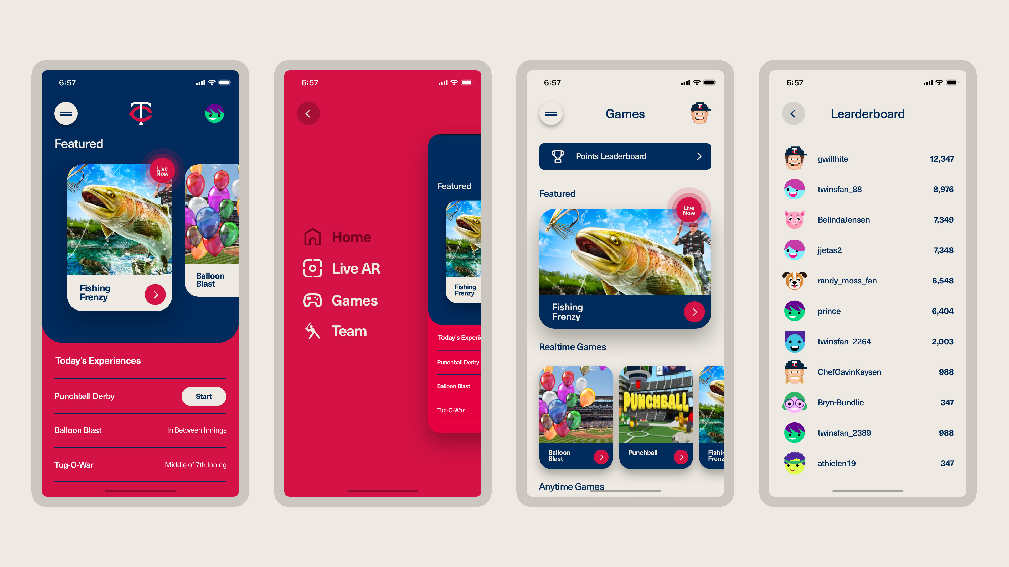 Fans can open the app and interact with each other through live AR effects or challenge each other to games. There are several games created by the ARound team. There is a leaderboard to help incentivize participation through competition. Leaderboard winners have the potential to earn achievements or rewards from the Twins.