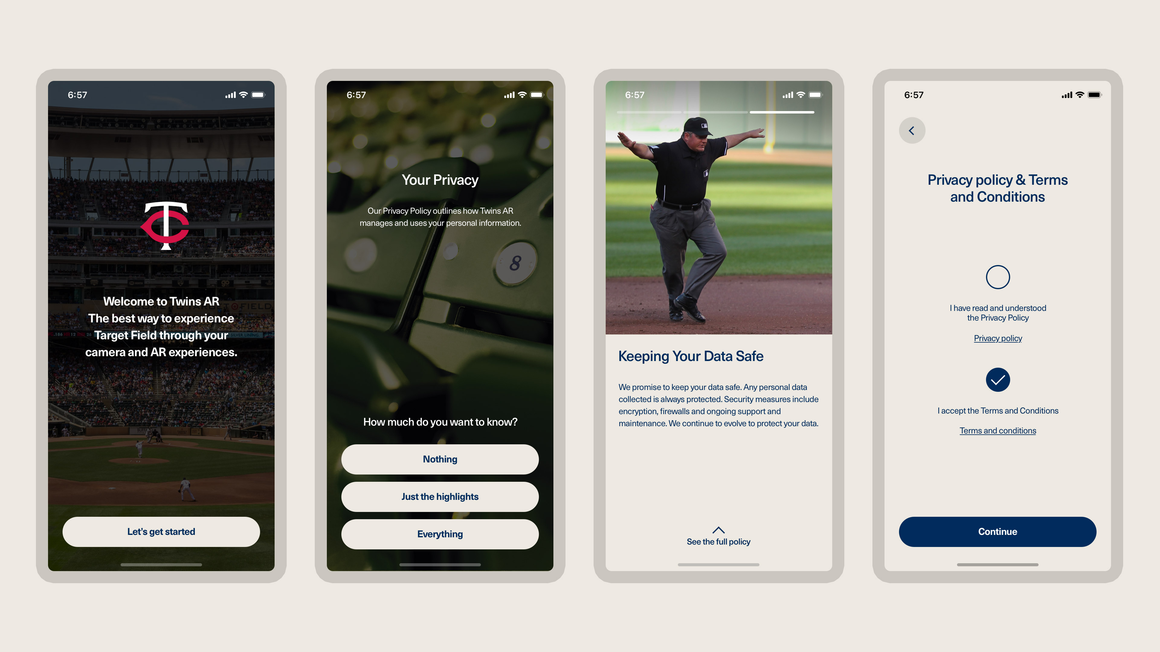 One of the core beliefs from ARound is maintaining privacy. We designed a solution that would add some transparency in what data is being collected and why. The privacy screens interact like an Instagram story where a person can quickly get the highlights of the privacy policy.